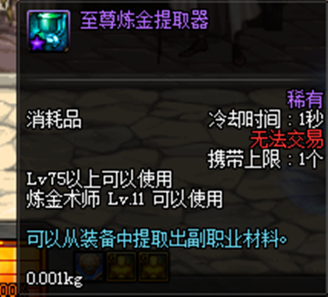 满级的提炼器一次可以提炼一个85的假紫,至少7个生命之息,还有一些别的材料,差不多一个假紫提炼的收益在3000以上。还算是不错的,生命之息的作用非常大,可以做一些比较好的药水,所以可以留着做药也可以直接挂拍卖!
